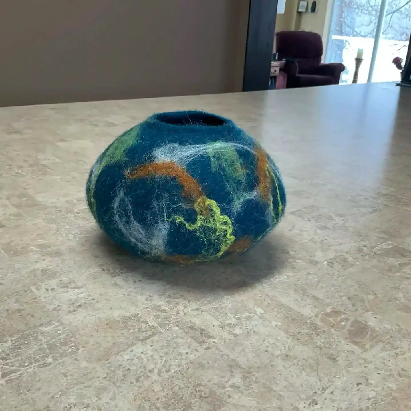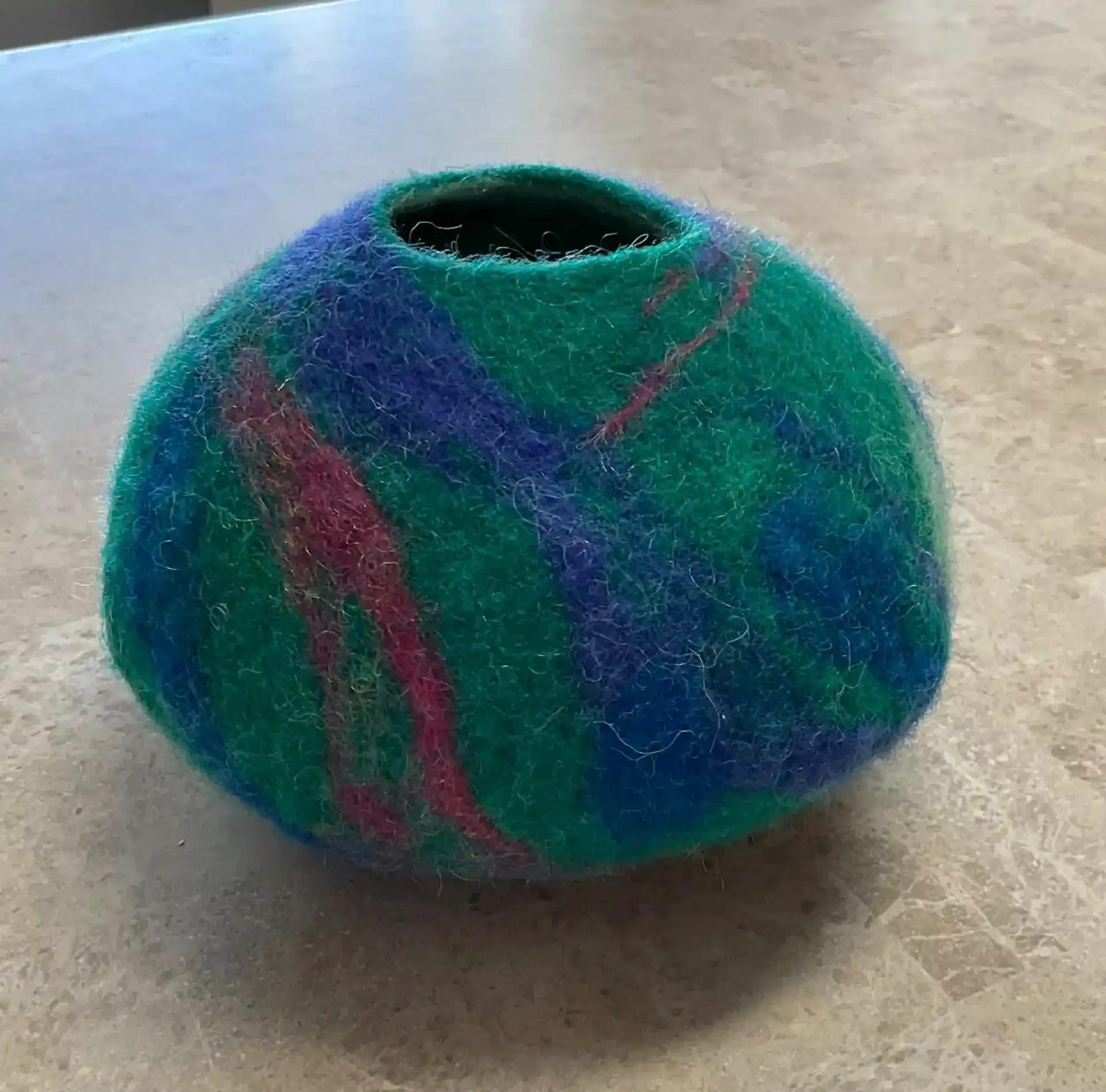 Join Carol and Heloise for a get your hands wet and soapy workshop and learn all you need to know about creating a felted pod (bowl). Terms such as resist, rovings, blending, fibre, agitate, and staple length will become familiar and you will get first hand experience using common things such as bubble wrap, towels, soap, sheer curtains or netting, soap, and water in the felting process. We will also discuss the science behind felting.